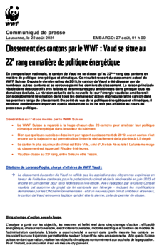 En comparaison nationale, le canton de Vaud ne se classe qu’au 22ème rang des cantons en matière de politique énergétique et climatique. Ce résultat ressort du classement actuel du WWF Suisse