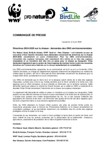 Demandes des ONG concernant la directive sur la chasse 24/25 (03.06.2024)